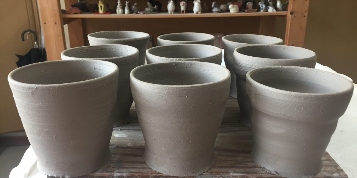古民家を改築してカフェを始める友人の為に、いろんな個性の粘土を使って、ふっくらとしたマグカップを作ってます。
